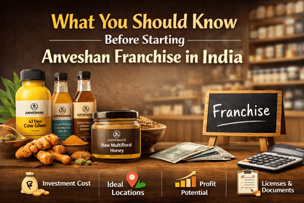 The investment required to start an Anveshan franchise in India depends on the business model and city where you plan to operate. Anveshan is a premium natural and Ayurvedic products brand known for honey, oils, ghee, and health foods, so the setup cost is slightly higher than a normal retail store.